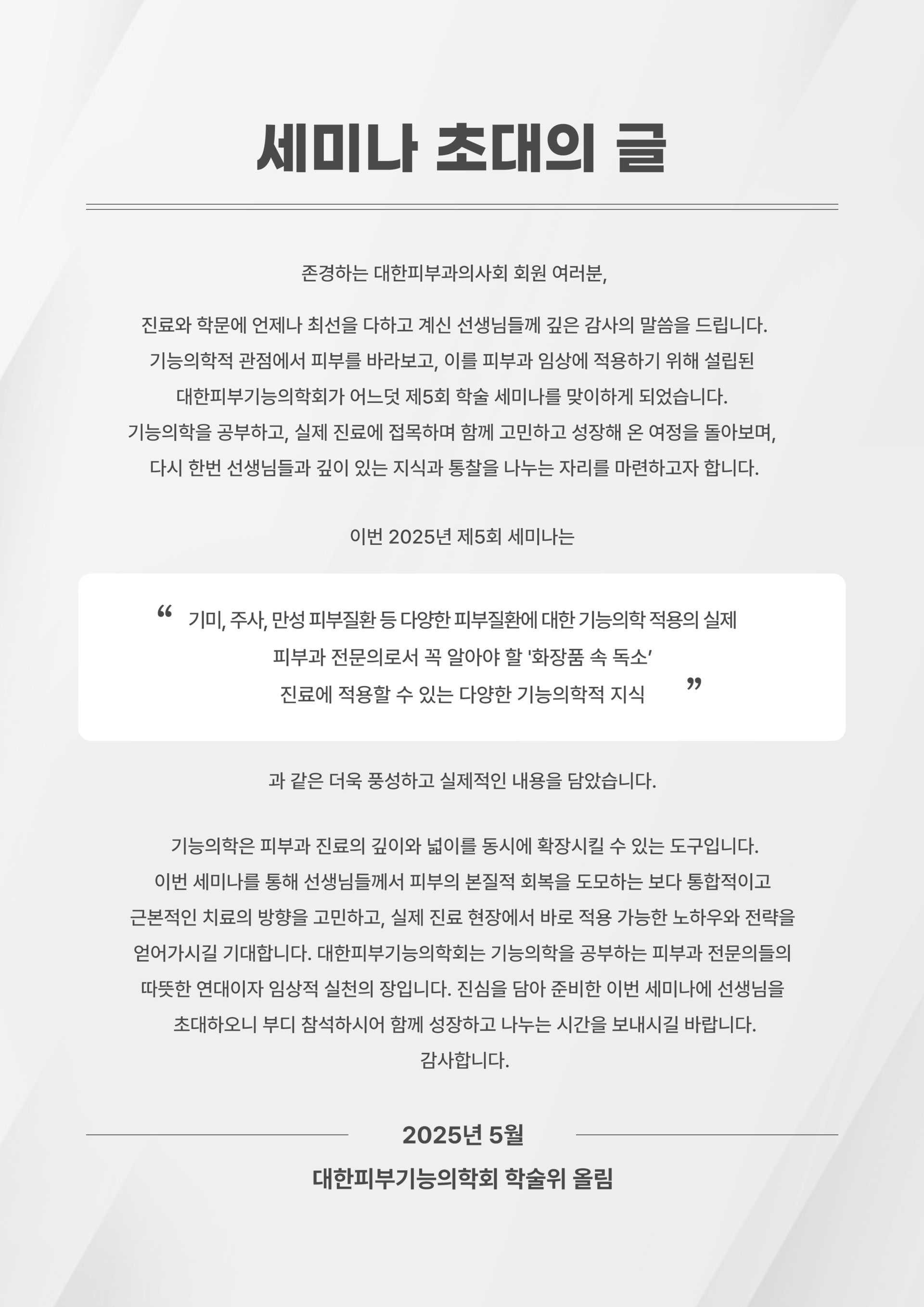 2025년 대한피부기능의학회 세미나